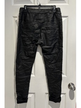 Price $79.00Italian-style crinkled vegan leather trousers made in Italy.