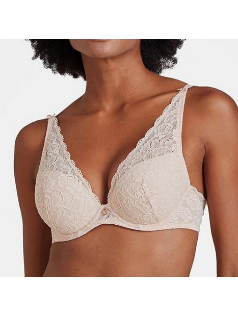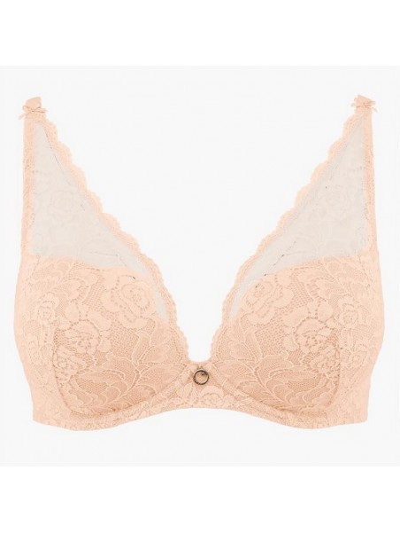 Price $215.00As part of the from the Rosessence collection by Aubade Paris, the new shoulder plunge design boasts a seductive push-up effect that creates a plunging cleavage. Elegant lace inspired by the Ispahan rose shapes the bust. This new design is stunningly eye-catching, and available up to cup size E. The timeless Ispahan rose blossoms into lace across feminine curves. The ever-popular Rosessence line combines romanticism with comfort in designs made from stretch moulded guipure lace. In a black or nude d'été colour, support is key to this confidently seductive line. Nudity is embraced by the rose, with the body's curves blossoming into romance.