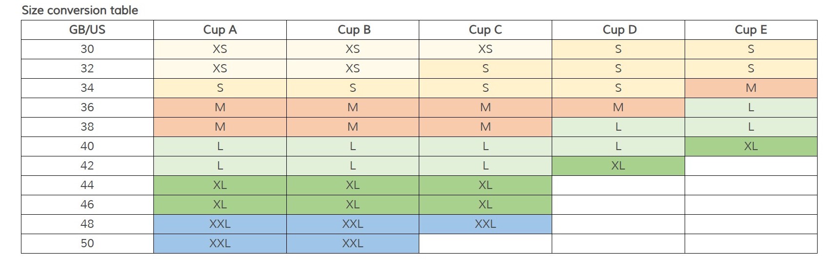 • Sizes XS to 2XL
