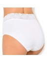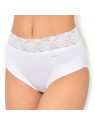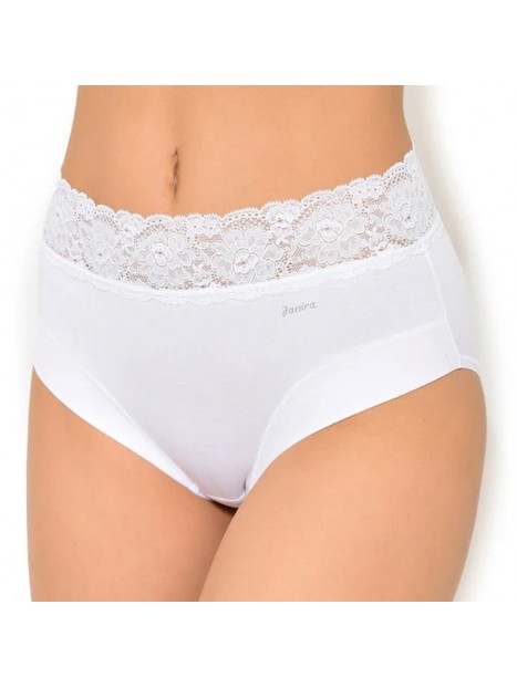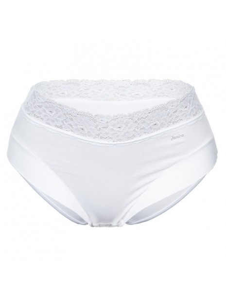 Price $67.00The Dolce Cinture 1031785 high-waisted panty by Janira features a thigh-high leg cut that elongates the legs while offering comfortable support. Its flat stretch lace waistband adds feminine elegance without leaving marks. Made from breathable cotton with Silk Touch anti-pilling treatment, it ensures a soft feel and long-lasting quality. With no visible elastic, it remains invisible under clothing. The cotton terry gusset is hypoallergenic and pH-regulating, providing optimal hygiene. A functional, elegant, and essential piece for everyday wear.