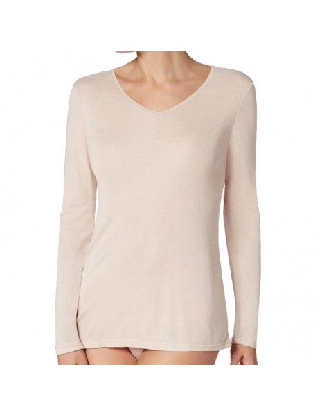 Price $67.00Perfect Day Camiseta M/L 1045206 by Janira is a women’s long-sleeve t-shirt made from soft stretch cotton with Silk Touch anti-pilling treatment. It features a round-neckline, fitted silhouette, and medium-density non transparent fabric for daily comfort or thermal layering. Its ample length ensures it stays tucked in under clothing. Available in White, Black, and Dune, sizes S to XL.