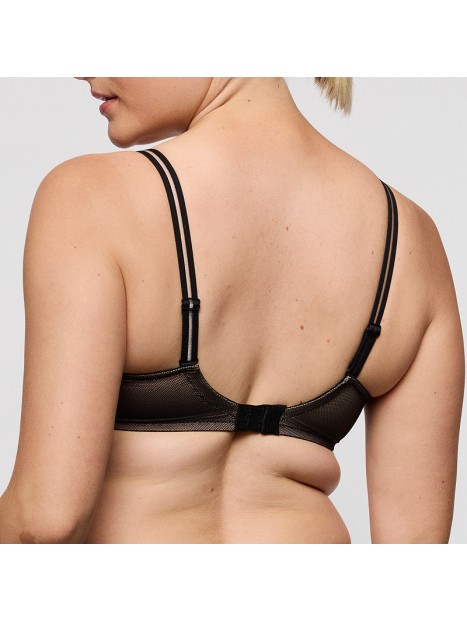 The Cools 0242560 heart-shaped padded bra by PrimaDonna Twist blends lightweight mesh with a sexy, modern look. Its padded underwired cups create a naturally rounded silhouette while offering comfortable support. The smooth heart-shaped neckline makes it perfect under any outfit, even fitted styles. Made with 31% recycled yarns, it combines bold design with a more responsible approach. The decorative straps are meant to be shown off, adding a trendy touch to your look. Available in sizes 32 to 42, cups B to G.