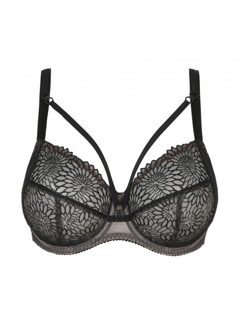 The Sophora underwired bra by PrimaDonna blends ultimate comfort with a bold, glamorous look. Unpadded for a natural fit and support, it features a sexy, sheer design that enhances the bust. The removable decorative straps frame the neckline beautifully—perfect under a V-neck blouse. With straps designed to be seen, this bra adds a confident fashion-forward touch. A seductive yet comfortable piece for women who love statement lingerie. Available in sizes 32 to 44, cups C to H.