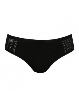 The Sport Panty High Waist shorty from Anita Active combines technicity, comfort and elegance in a minimalist and high-performance format. Designed for active women, it offers optimal breathability and quick drying, ideal for intense workouts or dynamic days. Its technical jacquard fabric ensures effective ventilation, while the side mesh inserts add a modern touch and unparalleled freedom of movement. The flat, narrow edges guarantee chafe-free comfort, even under tight-fitting clothing. The cotton gusset adds natural softness and hygienic protection. Available in a deep black color, these shorts are perfect to wear with your sports leggings, technical bras, or as breathable everyday underwear.