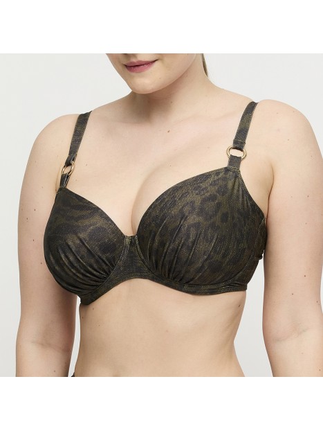 Le haut de bikini emboîtant Ratjada 4014410 de PrimaDonna Swim combine un look ultra‑cool avec un maintien exceptionnel. Ses bonnets pleins enveloppent et rehaussent la poitrine avec assurance, créant un galbe naturel et flatteur pour les poitrines du bonnet C au bonnet G. Conçu avec 50 % de fils recyclés, il allie style moderne et démarche durable. Son tissu pailleté chic et son imprimé animalier tendance apportent une touche audacieuse et sophistiquée à votre tenue balnéaire. Sa matière douce, résistante et à séchage rapide assure un confort optimal, que ce soit à la plage ou à la piscine. Disponible du 34 au 42, Ratjada est le choix idéal pour celles qui recherchent un haut de maillot flatteur, stylé et sécurisant.