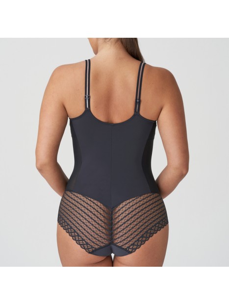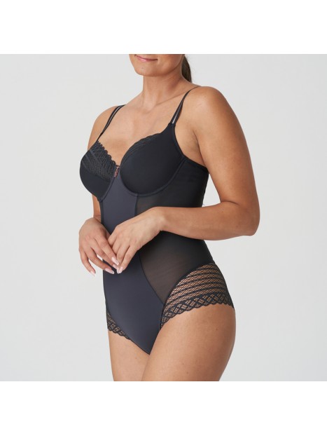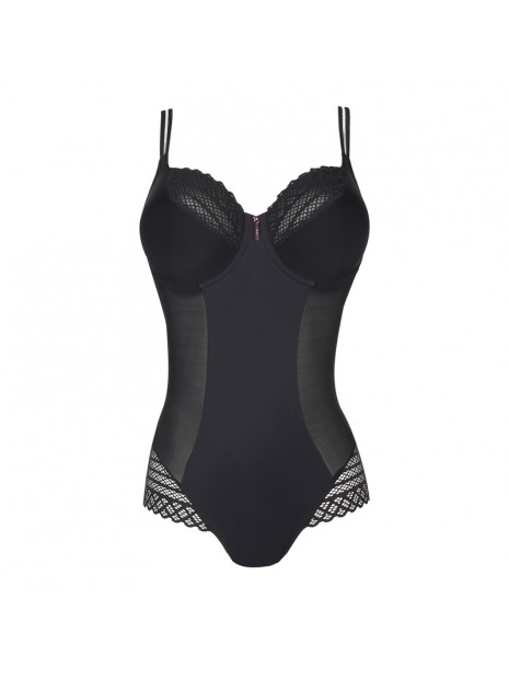 Prix 142,00 $Le body East End de PrimaDonna Twist est une pièce de lingerie boudoir-chic, conçue pour offrir une silhouette sculptée et un look moderne. Confectionné dans un tissu opaque ultra-doux, il est rehaussé de dentelle géométrique sur les bonnets, les hanches et le dos, pour un effet graphique et raffiné. Les bonnets non rembourrés à armatures assurent un maintien confortable et un galbe naturel. Le bijou rose doré à l’entre-bonnets ajoute une touche de lumière élégante. Ce modèle peut aussi se porter comme top séduction sous une veste, pour un style affirmé au quotidien.