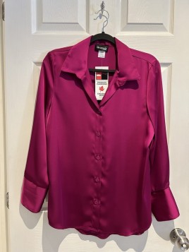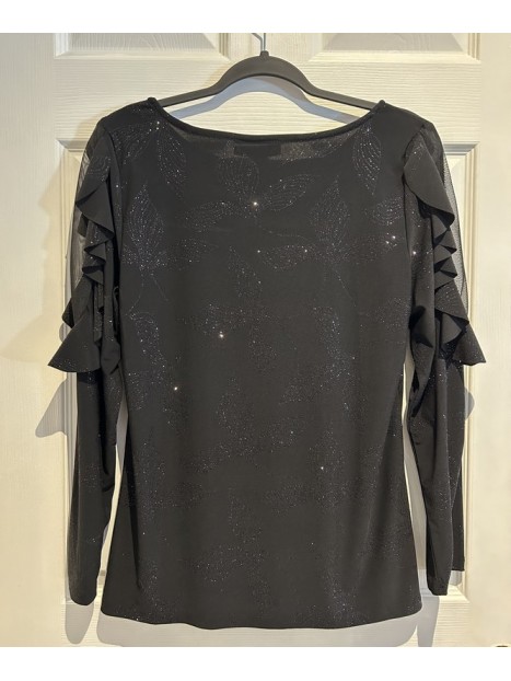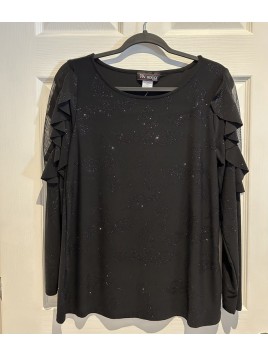 Prix 42,00 $Chandail brillant à volant noir fabriqué au Canada.
